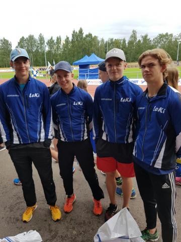 Saman ikäisissä pojissa LeKi-joukkueen muodostivat Tomy Nurmesniemi, Santeri Kuusiniemi, Juuso Petäjäsuo ja Matias Mustonen. LeKi-miehet olivat erässään kolmantena ajalla 44.37. Aikavertailusta finaaliin mentiin ajalla 44.18 ja joukkueen sijoitus oli kymmenes. Myös erän kakkossija olisi tuonut finaalipaikan ja siinä joukkue oli pitkään kiinni, sillä loppusuoralla yksi joukkue livahti takaa ohitse. Valtava pettymys finaalipaikan menetys ei kuitenkaan ollut, sillä tämä viesti oli lämmittelyä sunnuntain aitaviestiin, joka etukäteen tiedettiin hienoksi mahdollisuudeksi.
